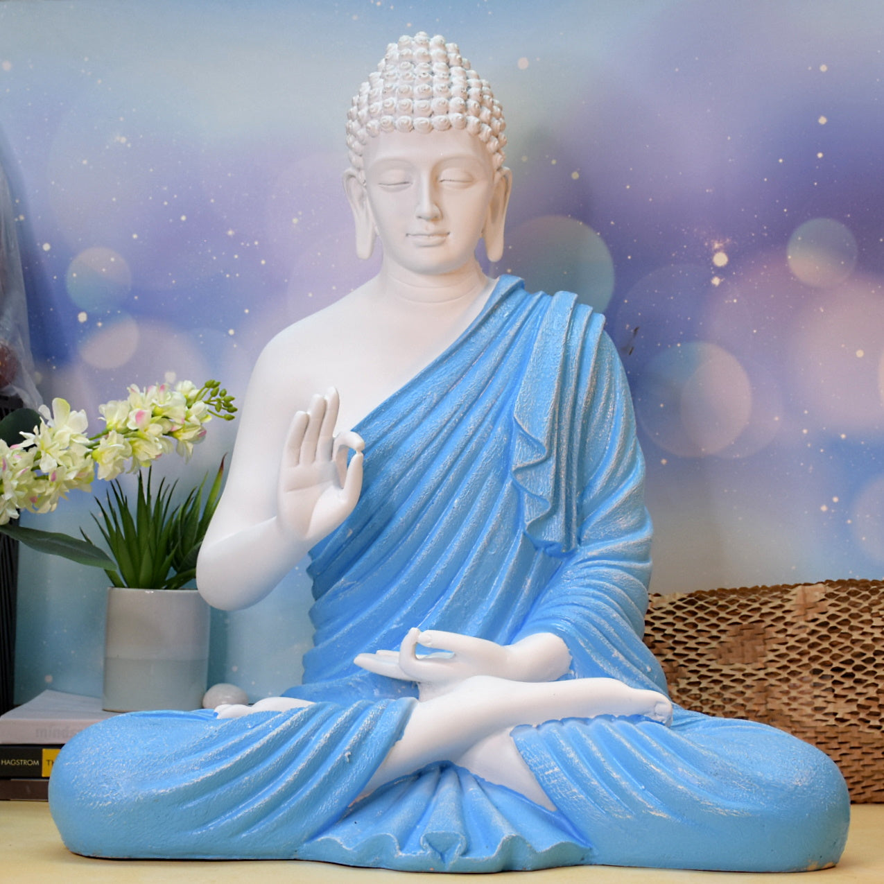 2 Feet Serene Blessing Buddha : Blue White
