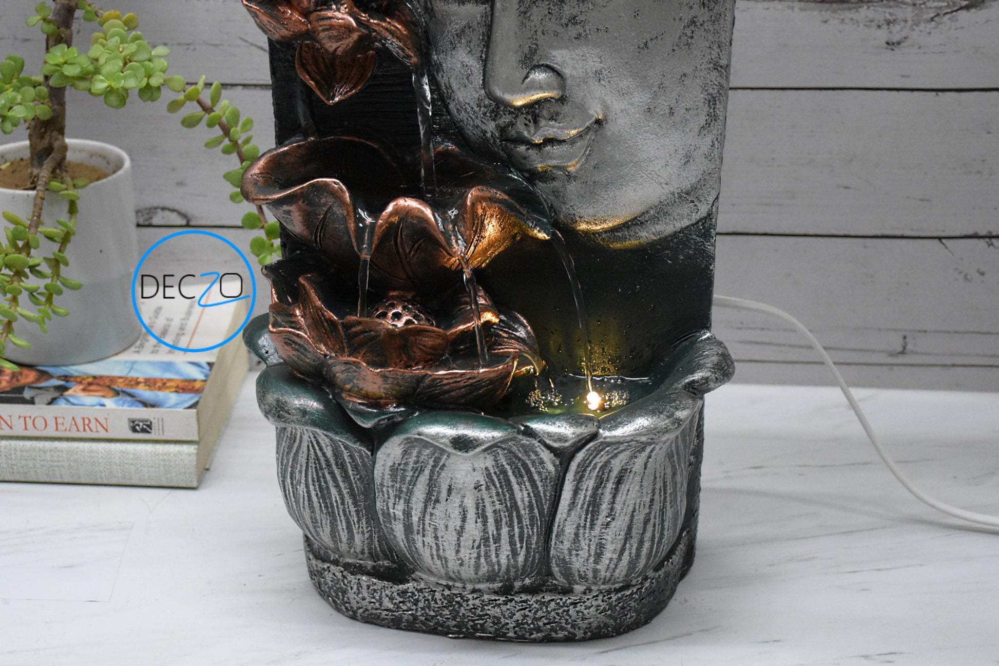 Buddha Face with Lotus Wall and Table Water Fountain : 37 CM, Silver