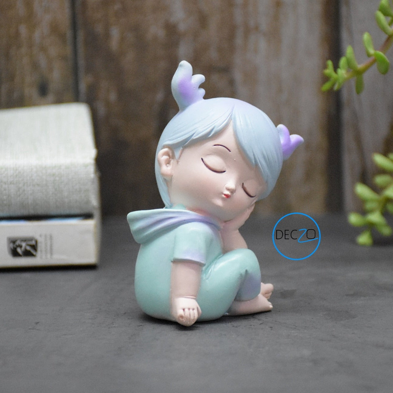 Combo of Miniature Sleepy Boy and Girl Resin Showpieces