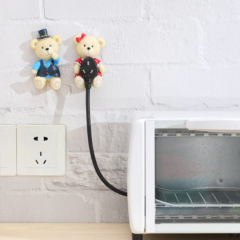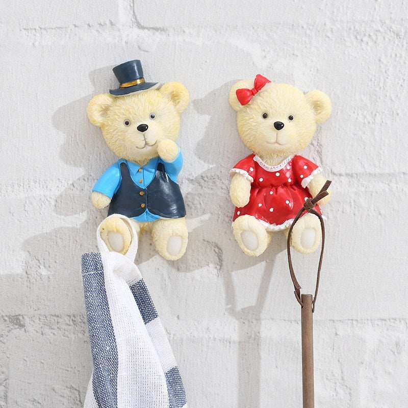 Cute Teddy Set of 2 Resin Adhesive Utility Wall Hooks Rack Hanger Sticky Plug Holder Decorative Storage Organizer – Model 2