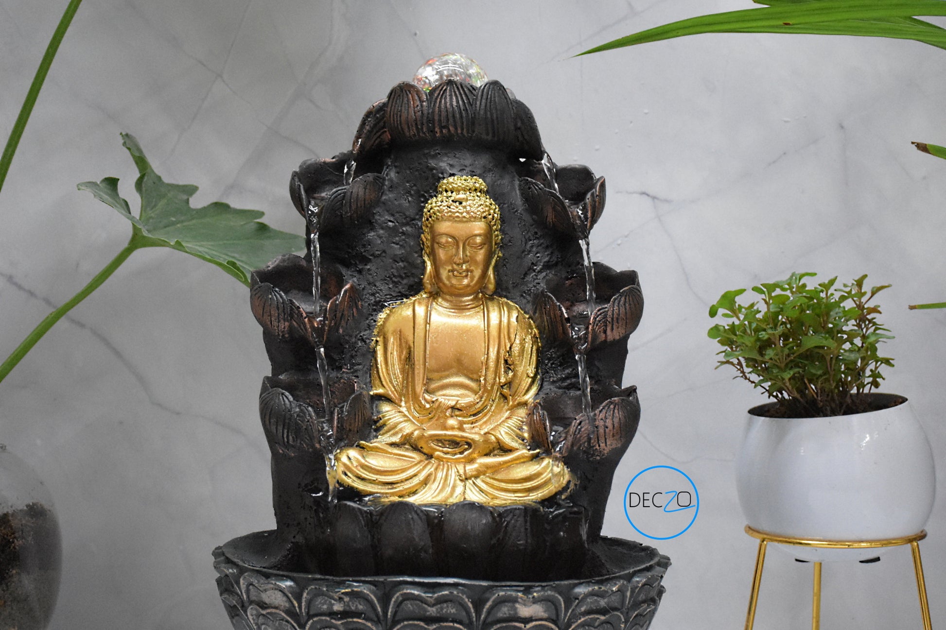 Double Cascade Meditating Buddha Electric Water Fountain : 37 CM, Copper
