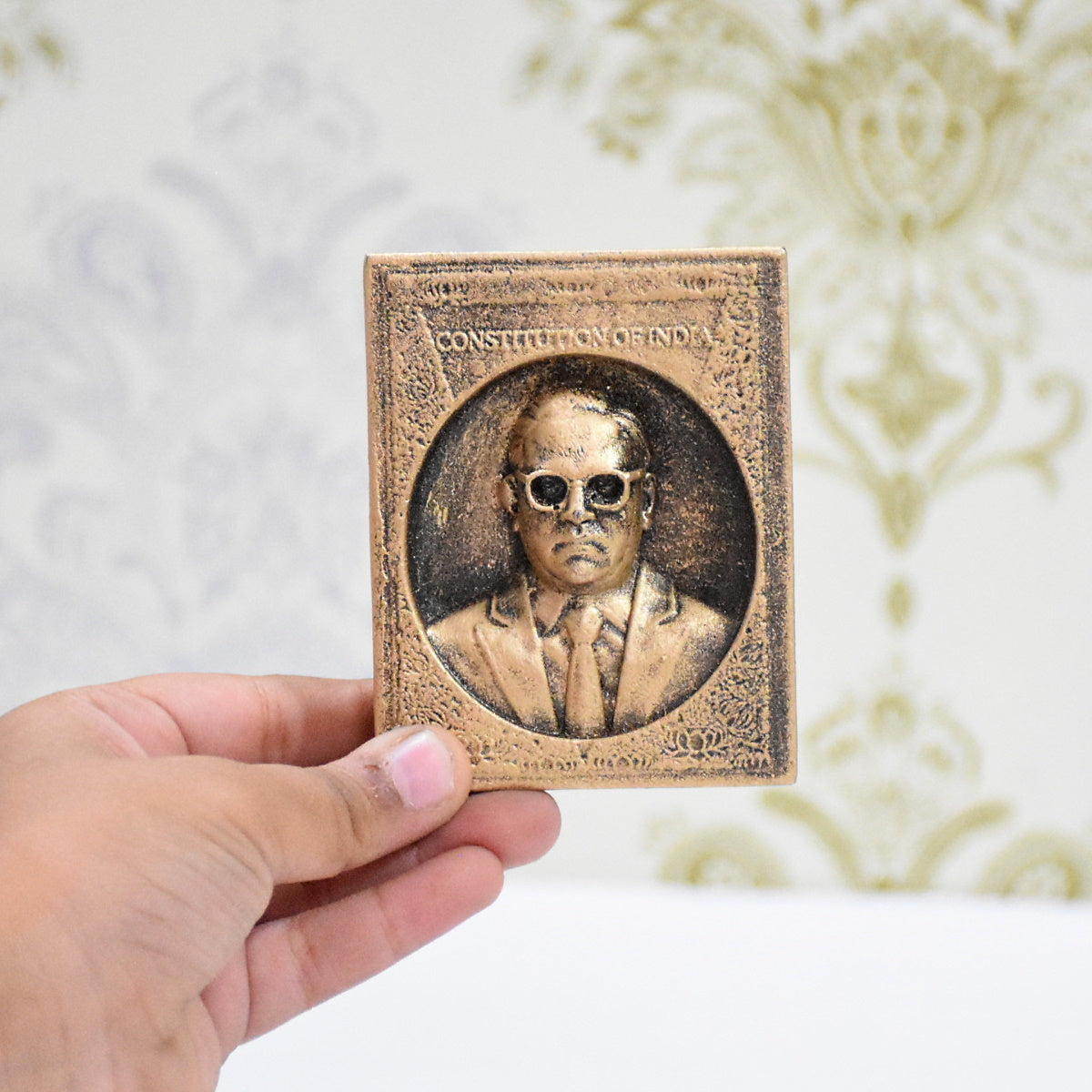 This Showpiece is dedicated to B. R. Ambedkar, the 20th-century Indian intellectual and the father of the Indian Constitution. This statue is Made of eco-friendly Polyresin and Marbel Dust. Best for Gift, Table Decor , Inspiration for Students, Table Decor. Lenght: 7 cm, Width :5 cm, Depth: 1 cm Material: Polyresin , Marble dust Available Color: Antique Golden, Pearl Blue, Gold , Pearl Black, Silver, Multicolor