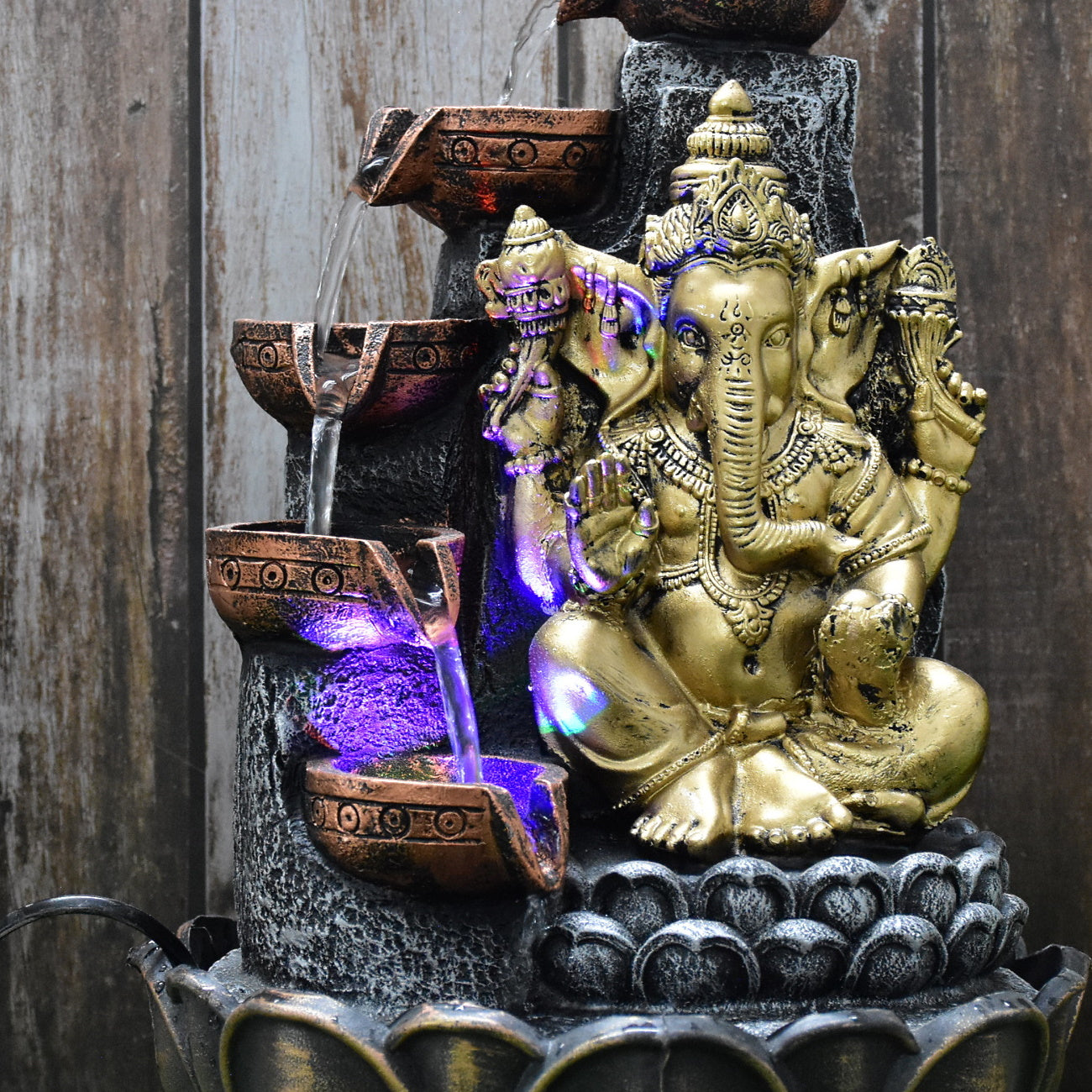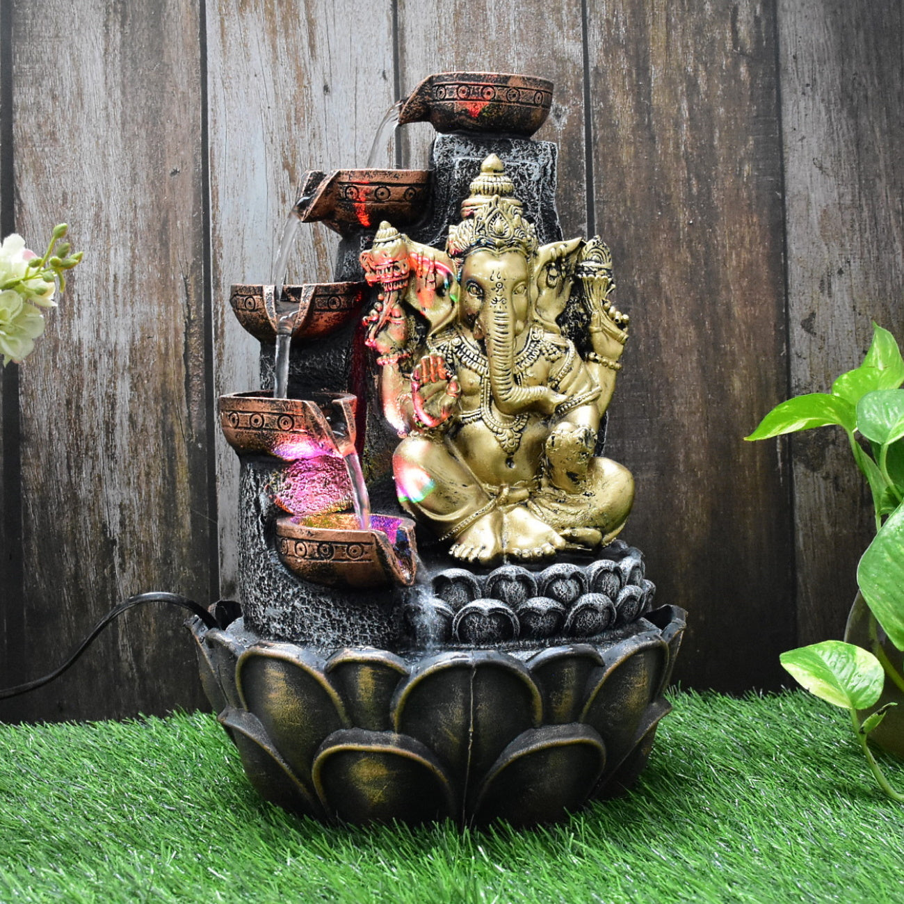 Ganesha Water Fountain (Model 1) : 42 CM, Golden-Silver