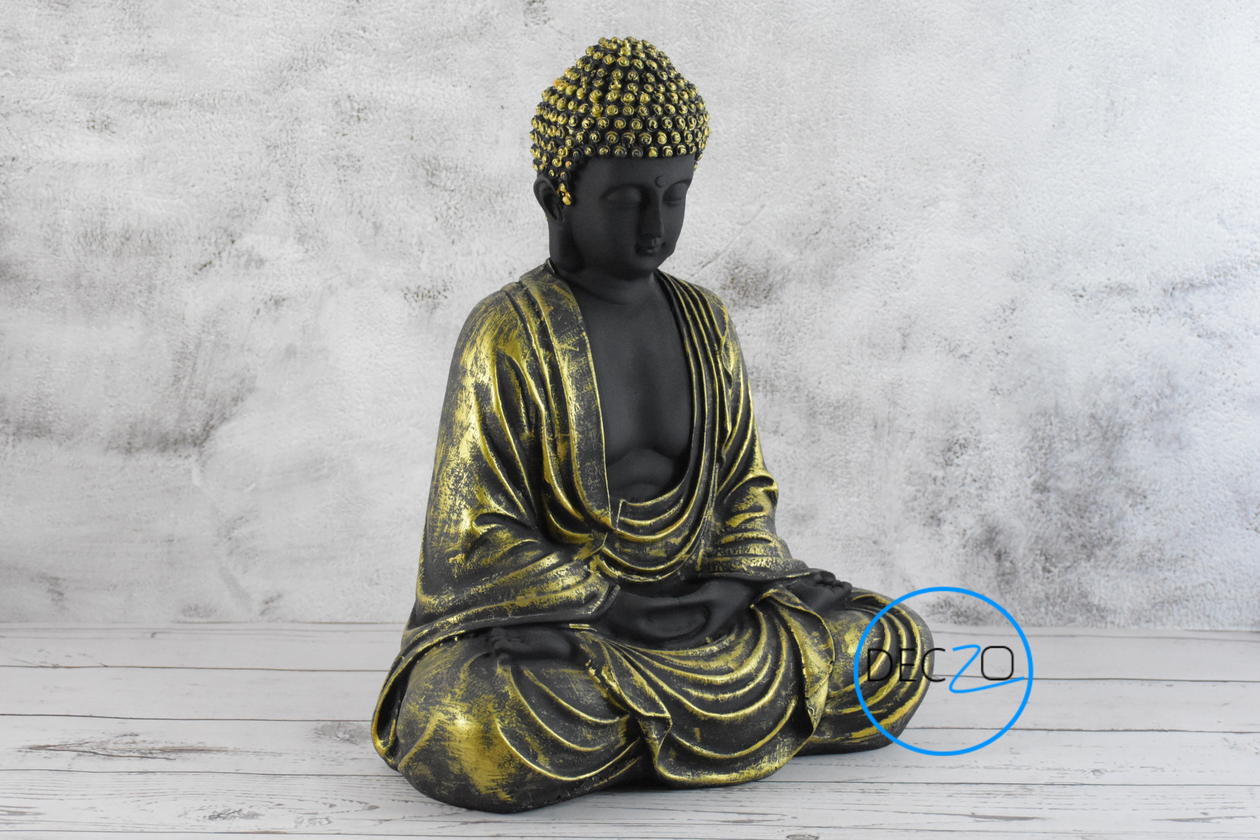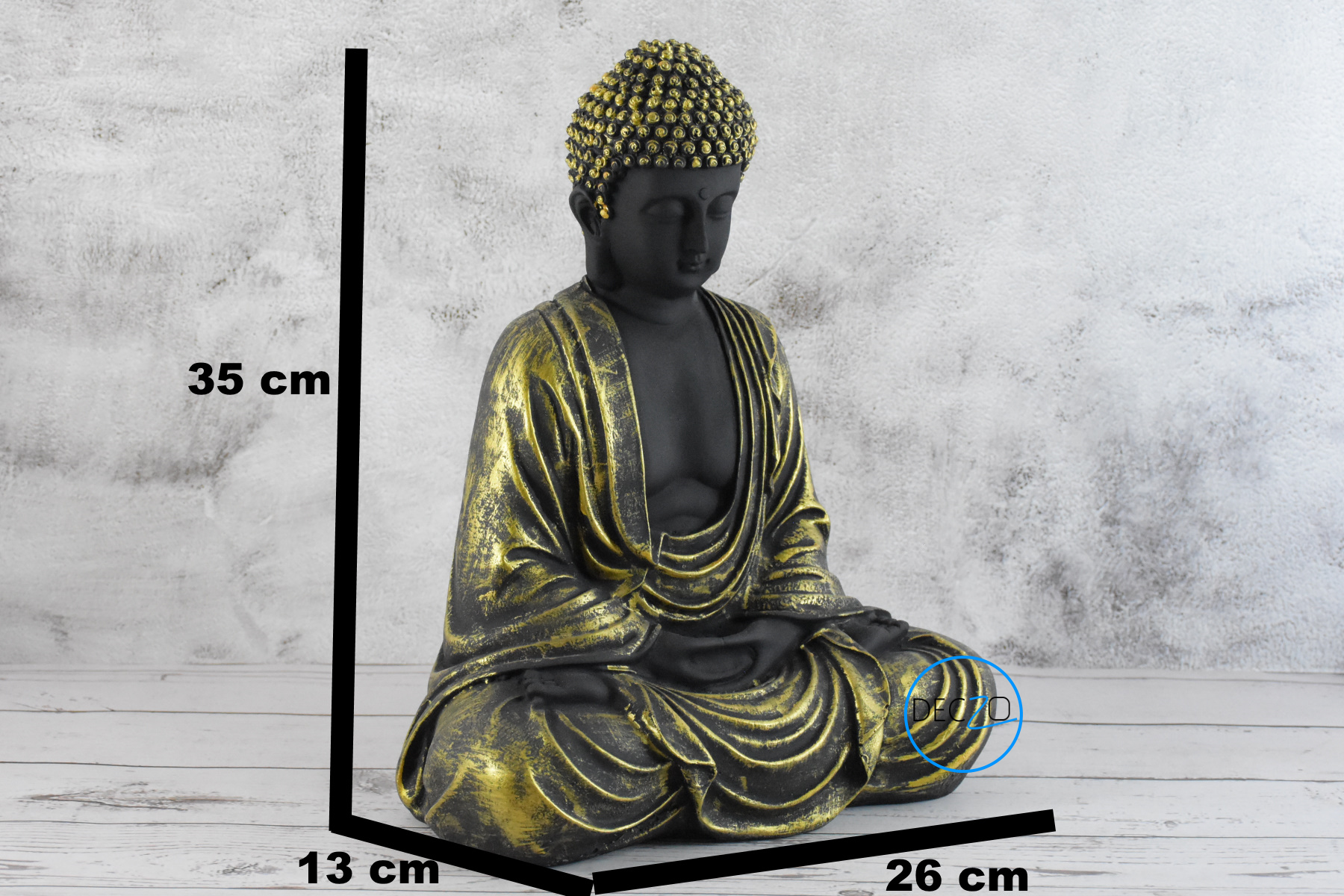 Hand Carved Sitting Buddha -35 CM, Black and Golden
