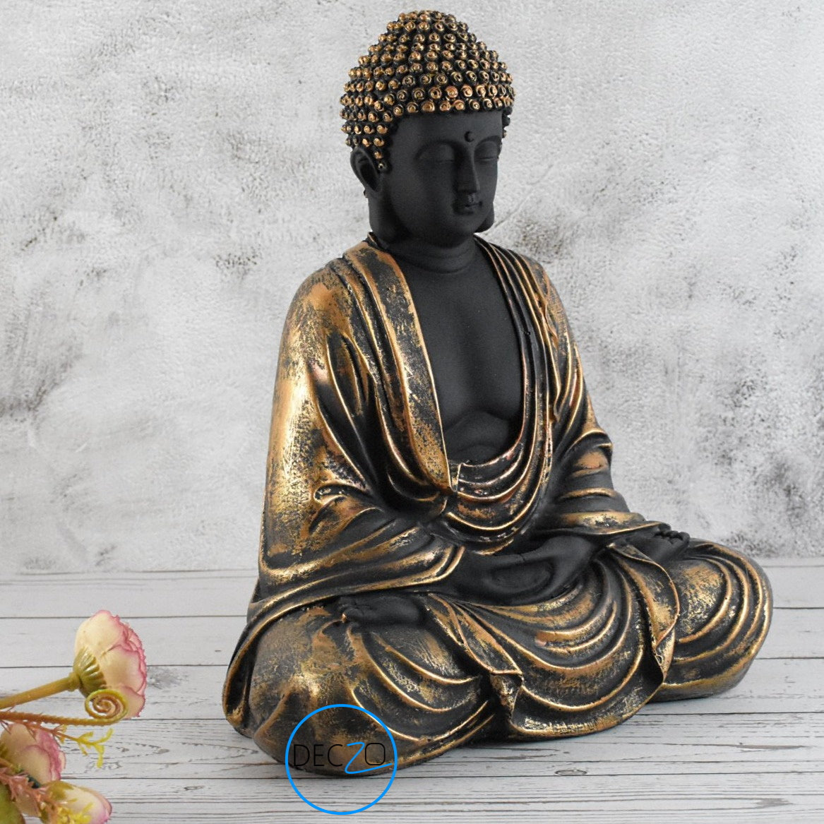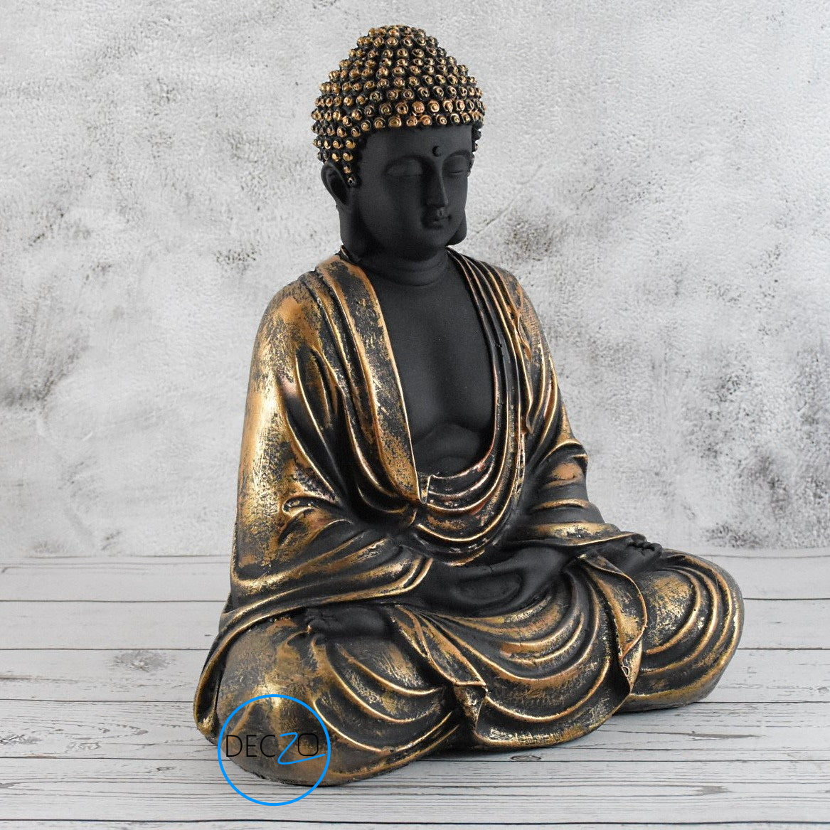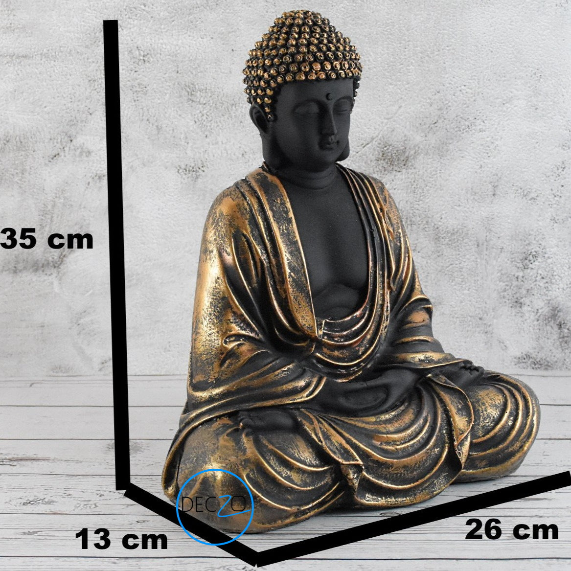 Hand Carved Sitting Buddha -35 CM, Black and Copper