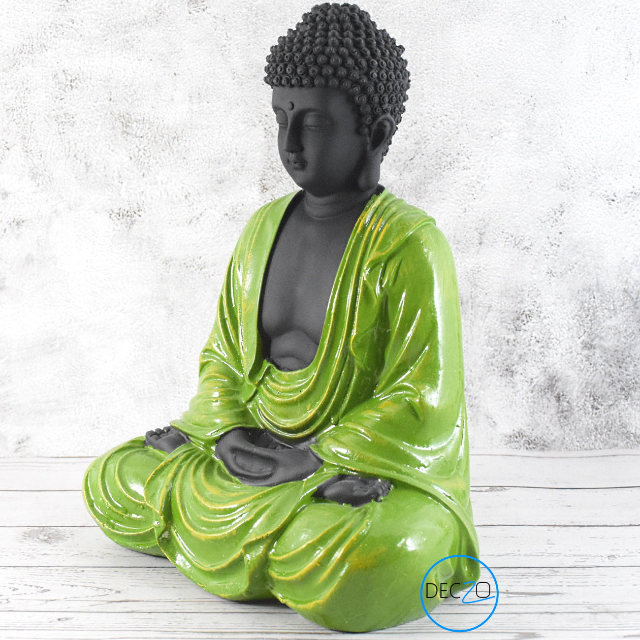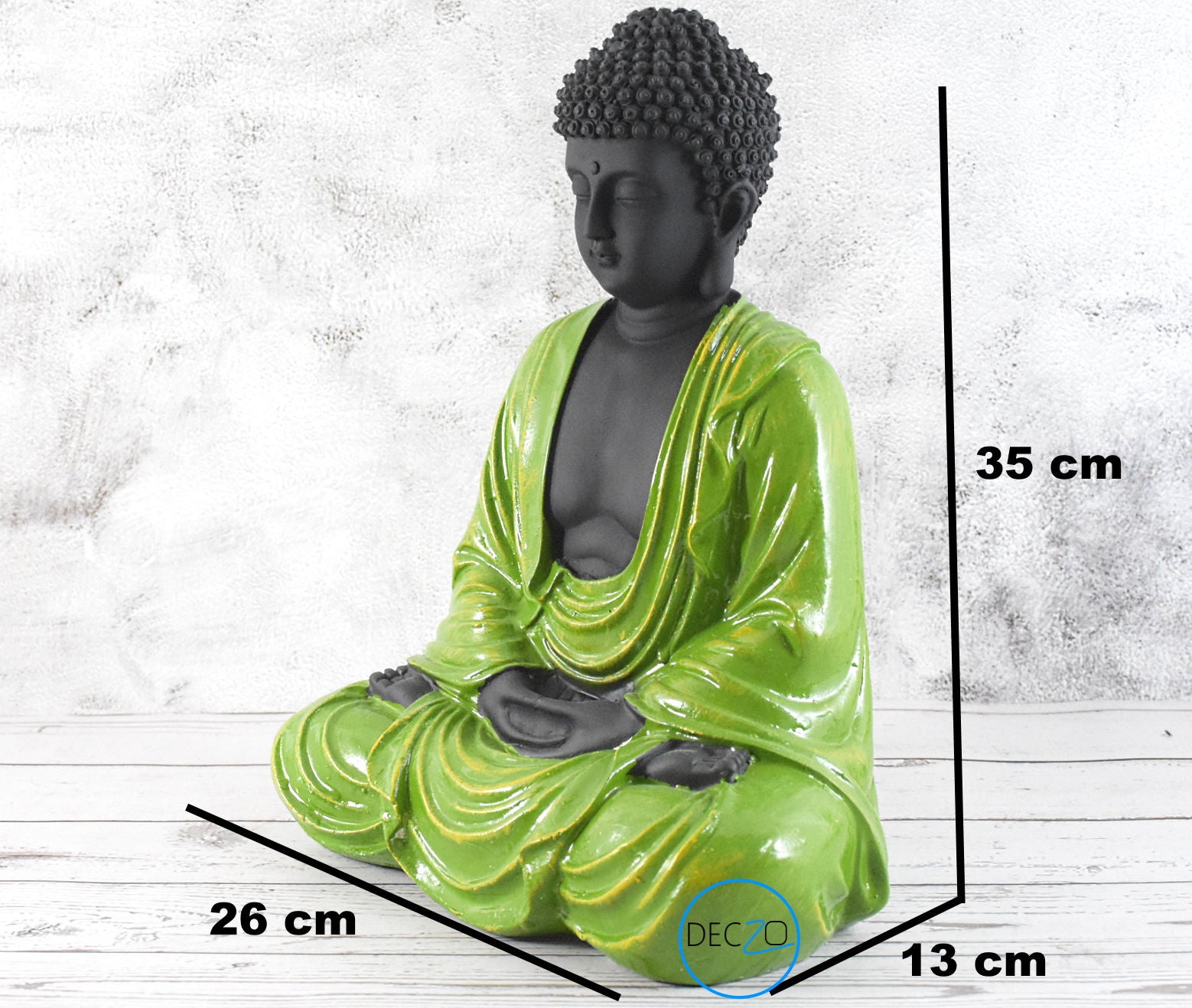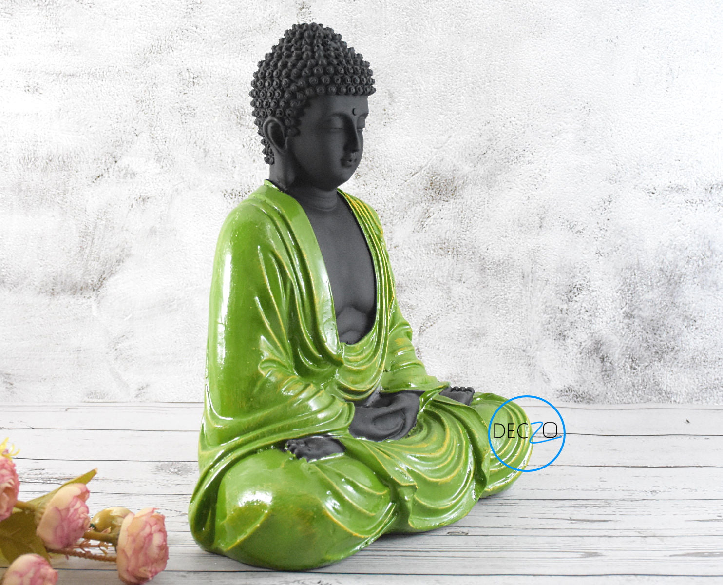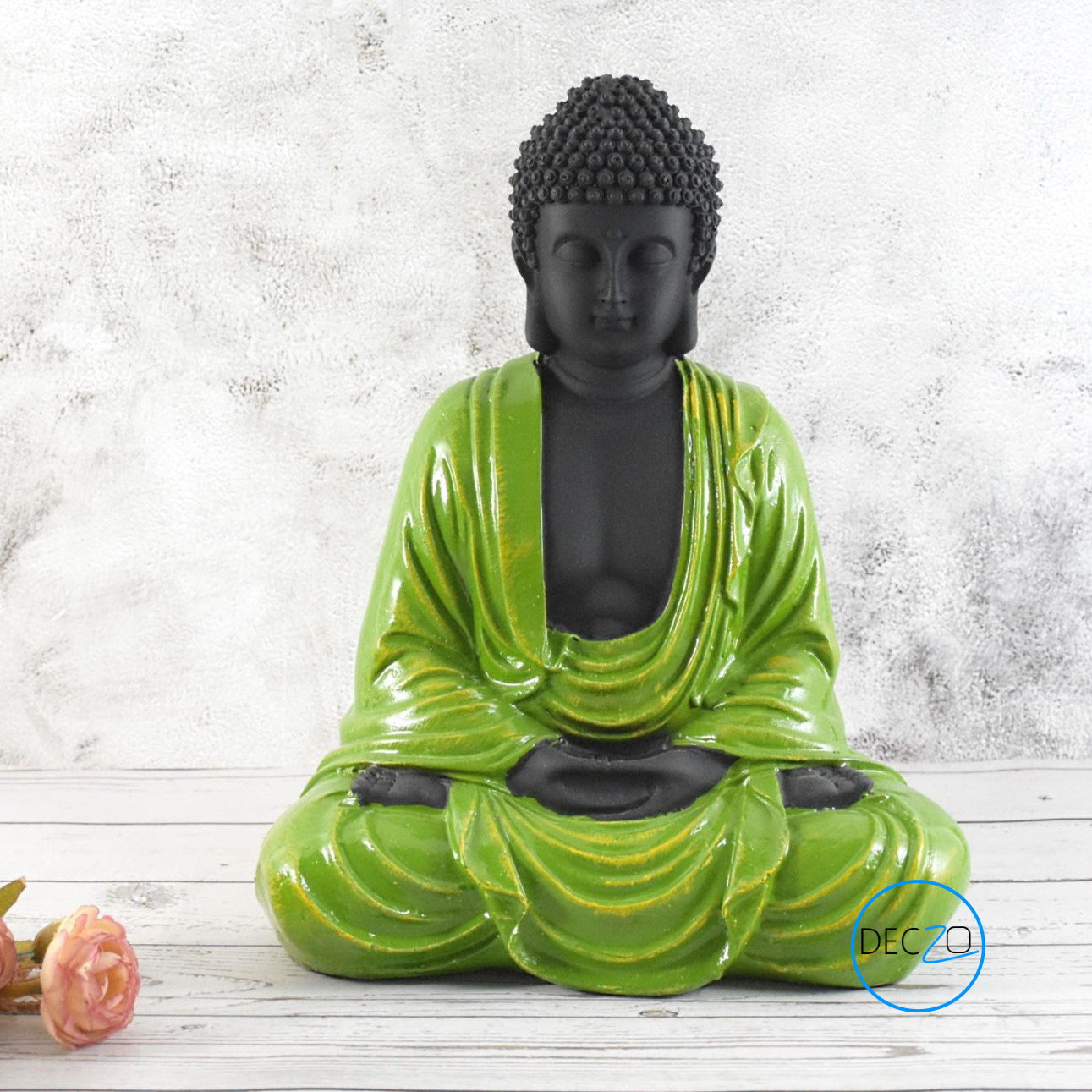 Hand Carved Sitting Buddha -35 CM, Black ,Green