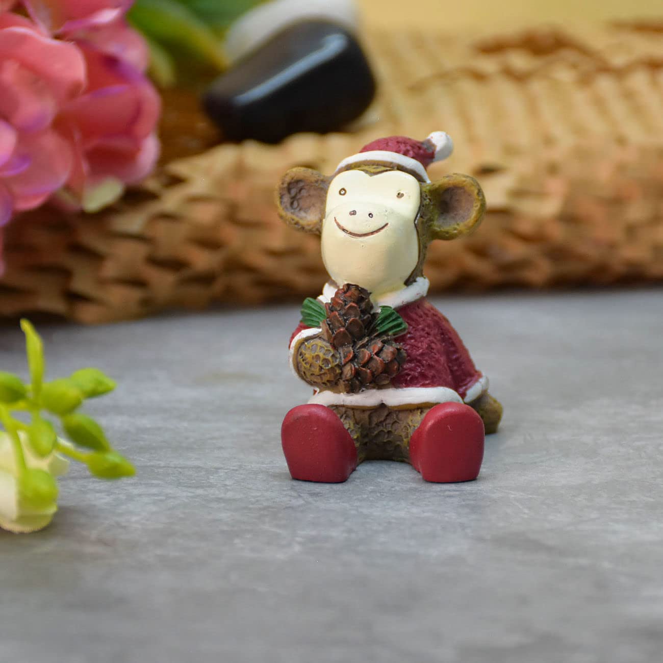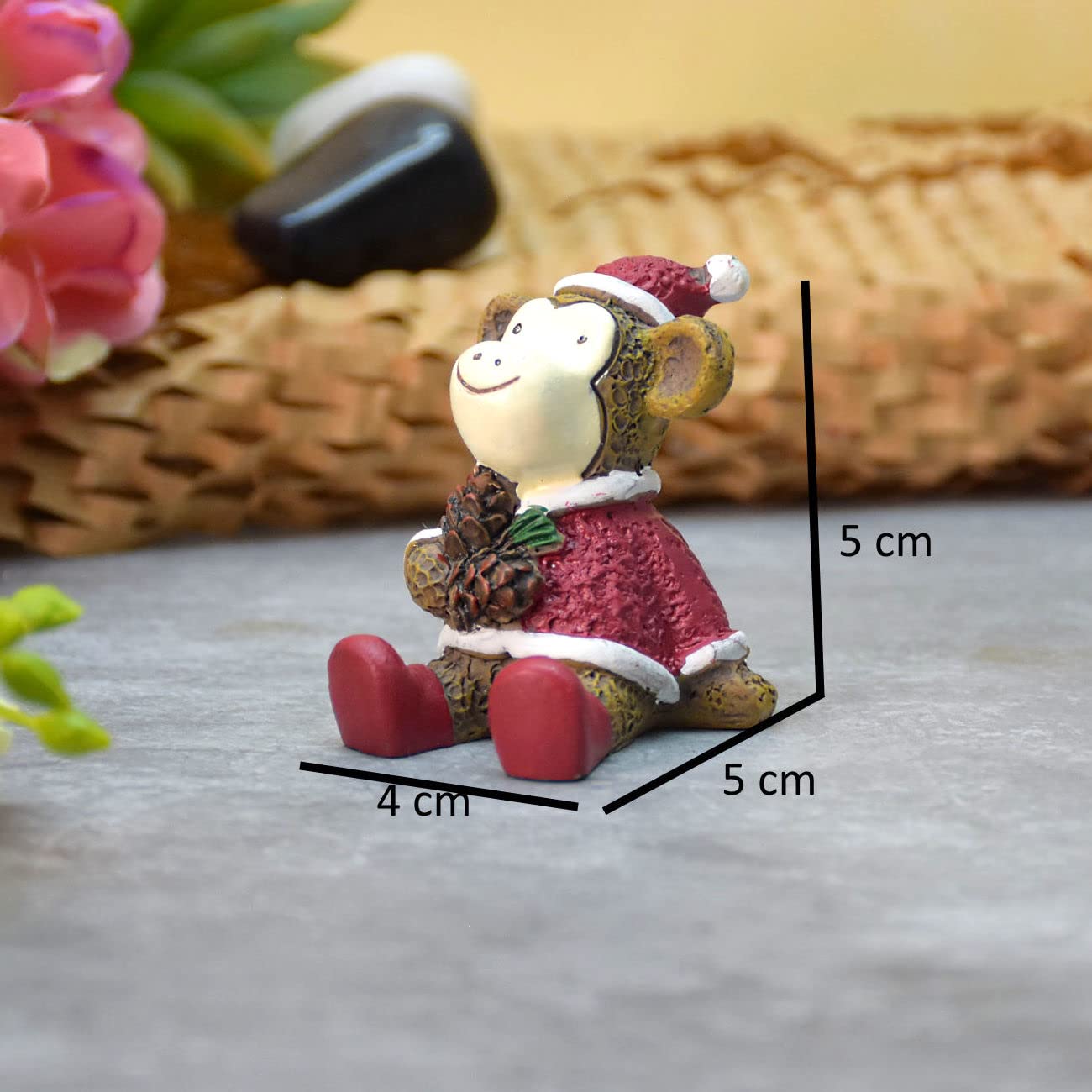 Miniature Cute Monkey with Pine Cone Garden Decor , Table Decor, Gift, Dashboard (4x4x5 cm)