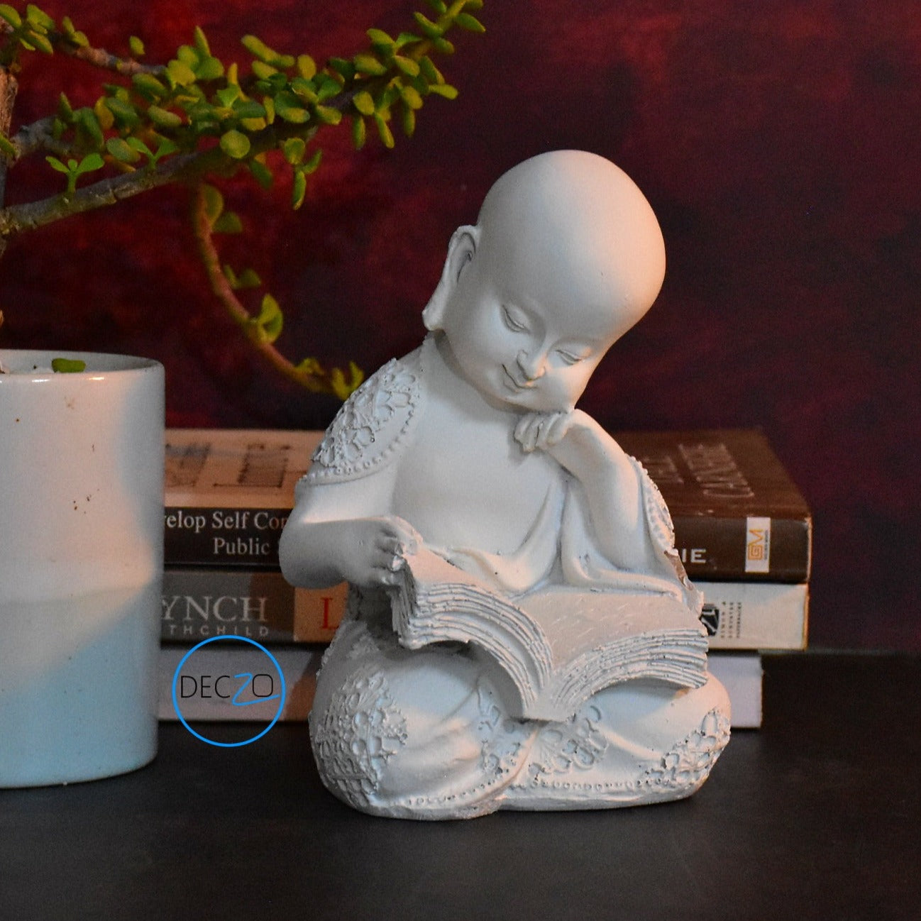 Monk Reading Book Statues for Home and Gift : White