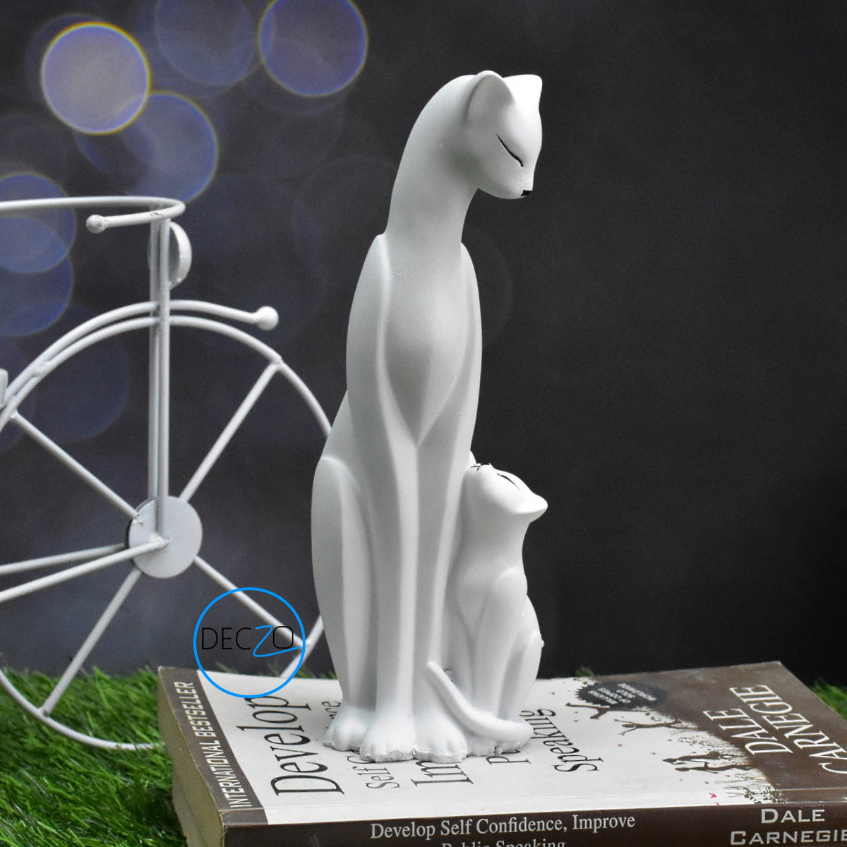 Bring an exquisite touch to your home with this intricate figurine that has been crafted to add an artistic flair to your home. Place it in your living room and let the serene design enhance the overall appeal with leaps and bounds. This magnificent structure of Mother and Child Cat made in resin has a tremendous powerful charm. Ideal to keep on your work desk, this will prevail an aura of potential intensity. The geometrically carved-out structure gives it a striking edge. They can accent your home or office for the right decor. Perfect for adding a decorative touch to any bedroom, living area, dining table, office, spa, nursery, or even a foyer or entryway
