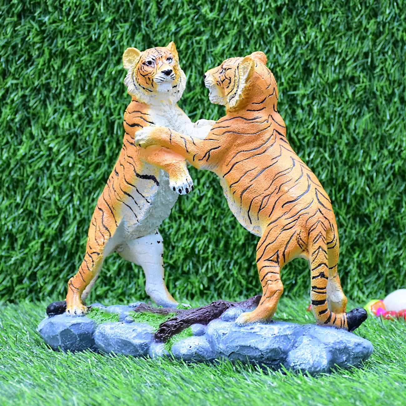 Playing Bengal Tiger Pair Collectible Wild Cat Animal Garden Decoration Figurine Statue