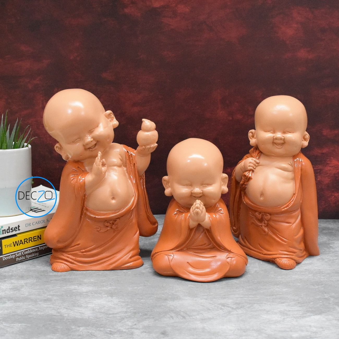 Set of 3 Different Baby Monk Showpieces : Orange