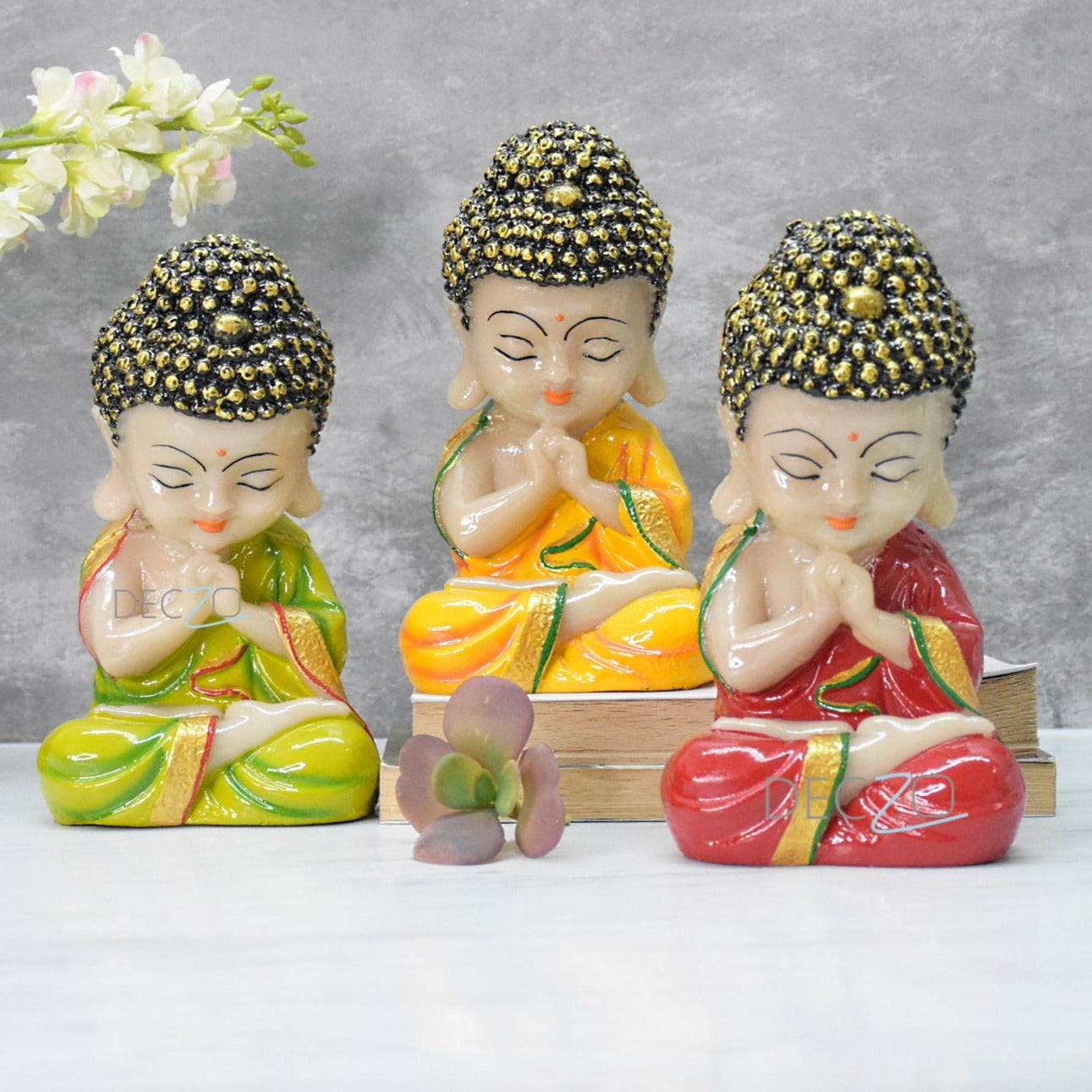 Set of 3 Marbel Buddha in Thinking Position : 19x10x9 CM, Green,Yellow,Red