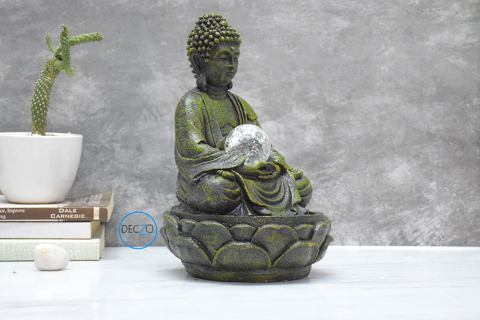 Table Top Buddha Water Fountain : 28 CM, Green Touch