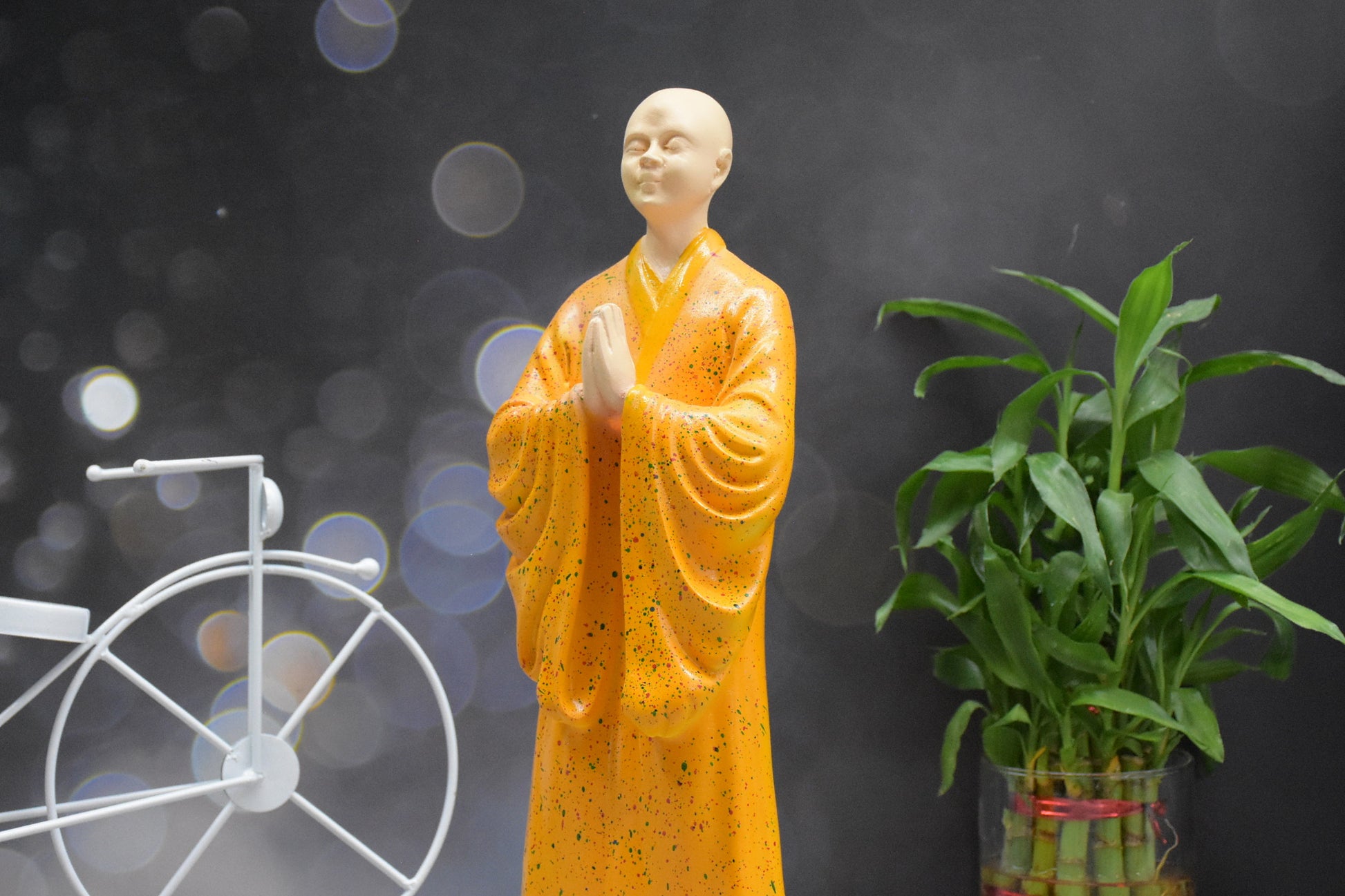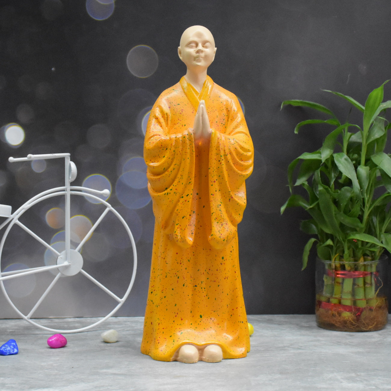 Zen Monk Statue for Decorations Creative Home Accessories Study Desktop Living Room Office (Orange)